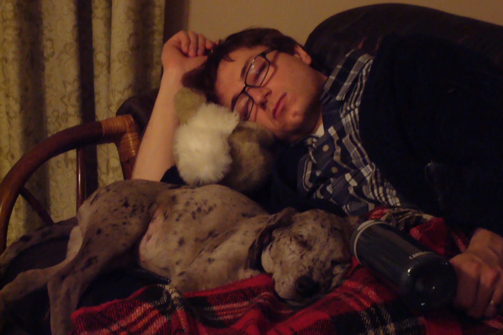The next day, while driving around, we discussed adopting a large dog sometime soon, the names we coule name it and we started to get excited that we were actually going to start the process soon-ish. I had originally said that we couldn't get a dog until end of May/beginning of June because then my schedule would change for the summer, so we hadn't really seriously thought that we would have a dog before that, but we could start the process immediately, not knowing how quickly the process could go... The dog I had been stalking already on Petfinder.com was already gone, and I hadn't even thought about a dane. In the car, I told Luke that I had just seen a litter of about 6 or 7 dane mix puppies for adoption, and maybe we should take a look at them later. After running our errands, we went to a bbq at Hans and Kaitlins', and we were greeted immediately with, "We're sorry to hear about Dwight. Now, when are you getting a dog?" We responded with "Um, very soon!" and that really set it in motion.